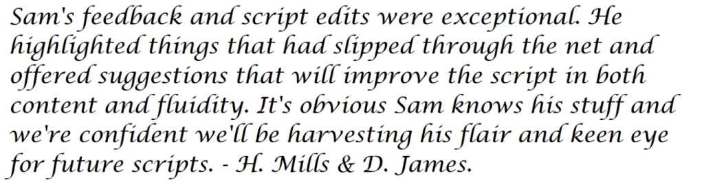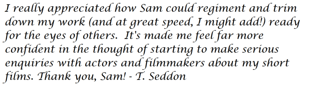As a screenwriter myself, I know how important it is that you get your script just right. Not just the formatting but the writing style, the structure, the characterisation – the whole package.